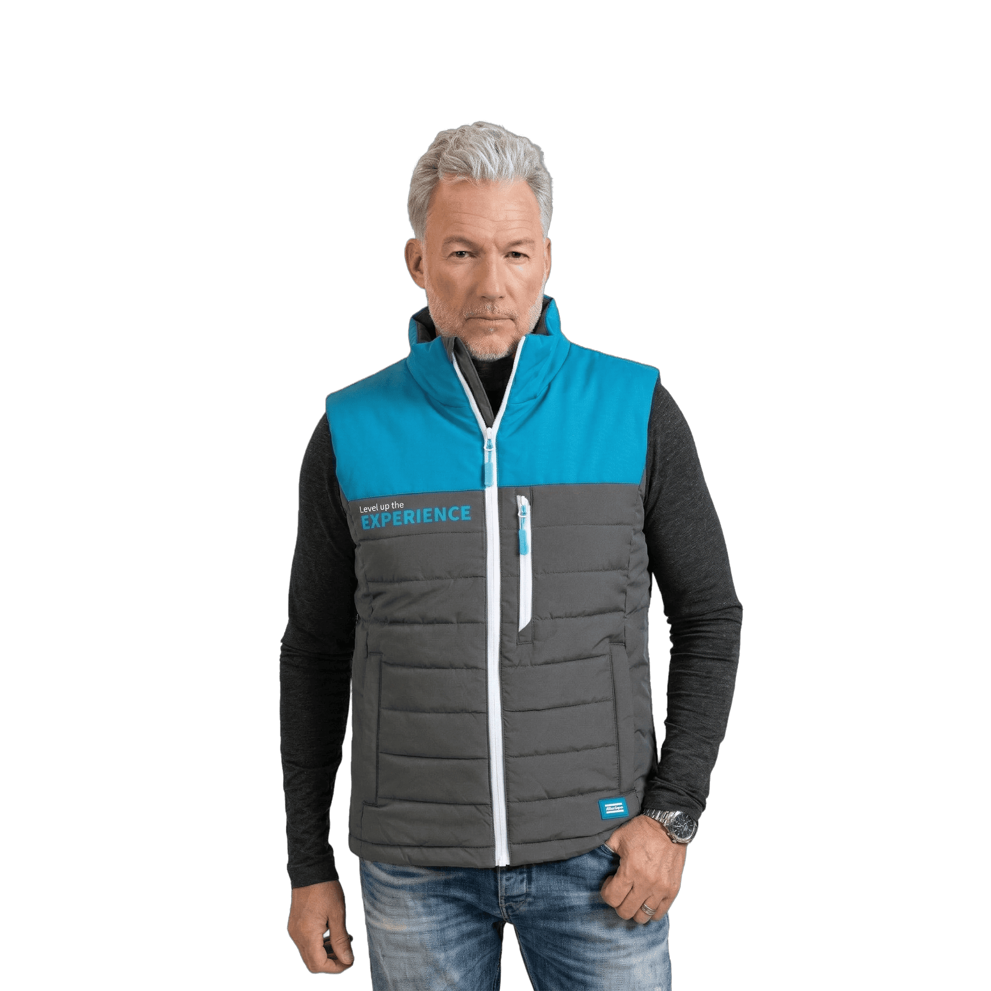 atlas copco grey and blue active padded vest