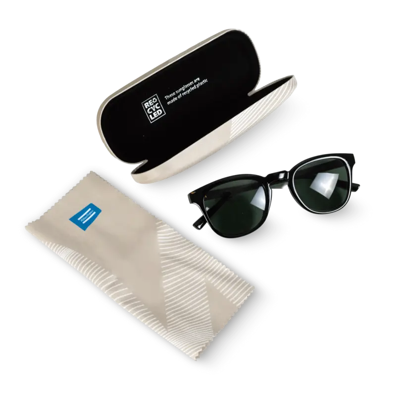 A sleek and practical sunglasses set that includes stylish UV400 sunglasses, a protective hardcase, and a soft cleaning cloth. The lightweight frame and high-quality lenses offer reliable sun protection and everyday comfort.